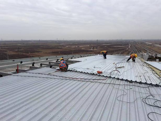 津潍高铁东营南站,这座串联区域交通的重要枢纽,每一步建设都牵动着多方期待。作为项目金属屋面参建单位,雅博股份旗下山东雅百特紧跟整体部署,以高度的责任意识配合工程节点推进。在冬季施工的攻坚阶段,面对跨铁路线施工的特殊限制,项目团队抢抓时效、实干攻坚,在铁轨旁勾勒出最动人的奋斗图景。